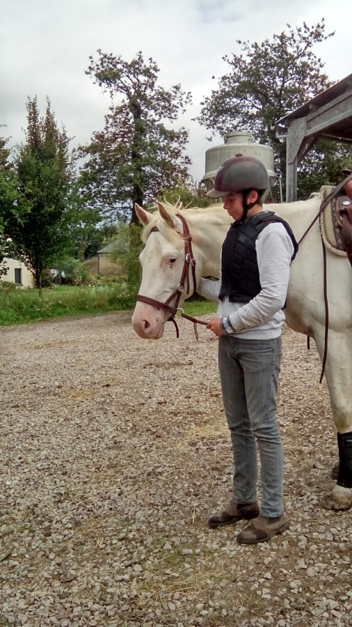 Kilian a monté sans soucis, un peu contracté au début et Pauline l'a bien pris en main, il avait un peu peur de partir au galop, elle lui a fait faire beaucoup de transitions trop travail -trop enlevé jusqu'à finir par tomber au galop naturellement, il avait le sourire