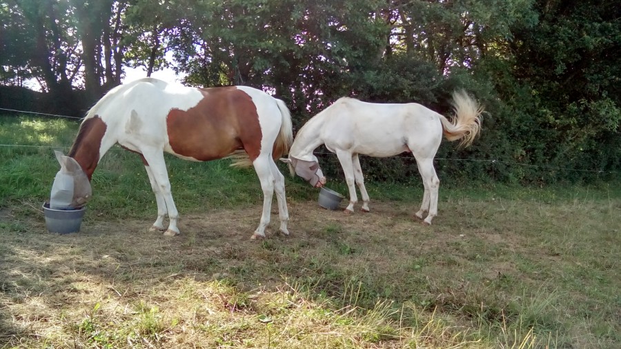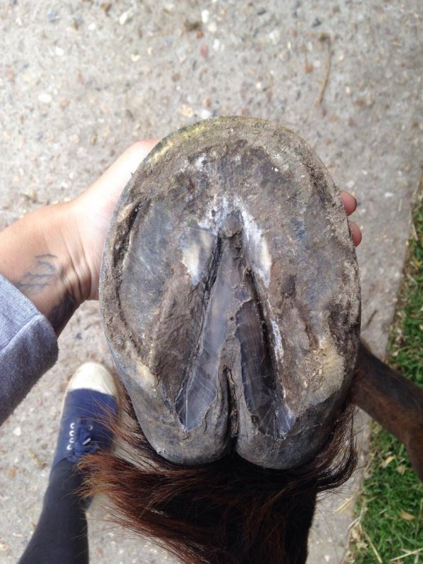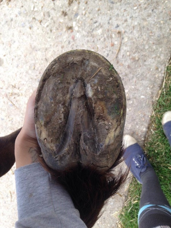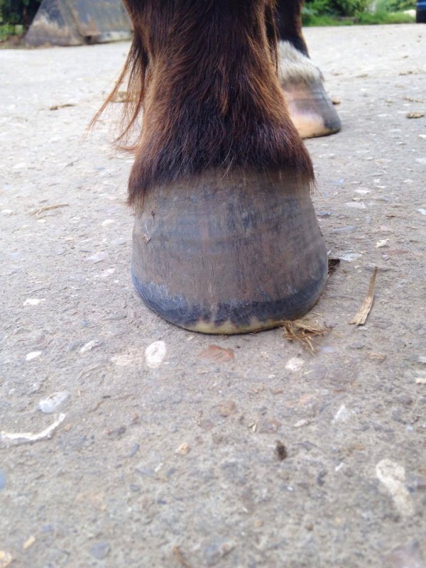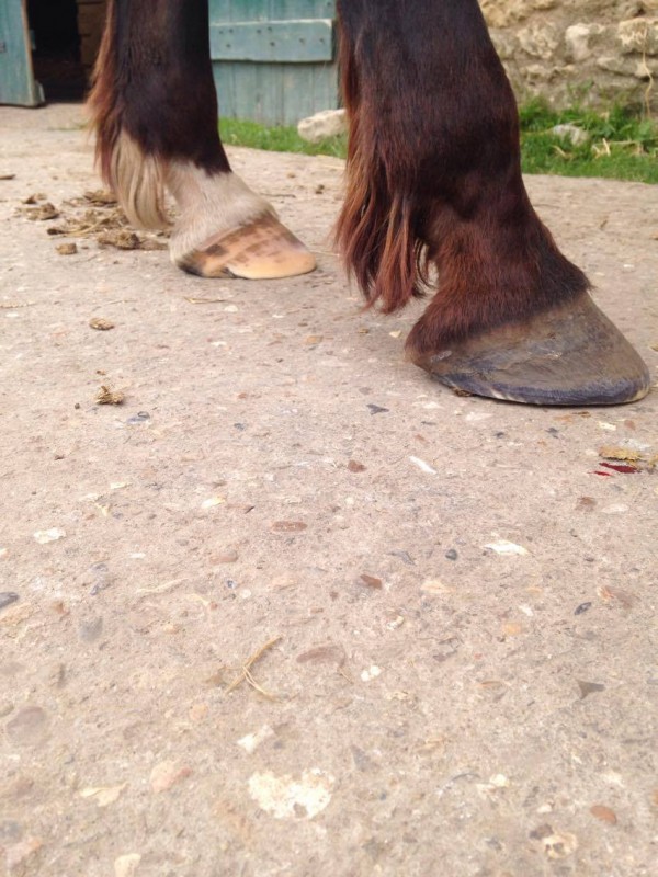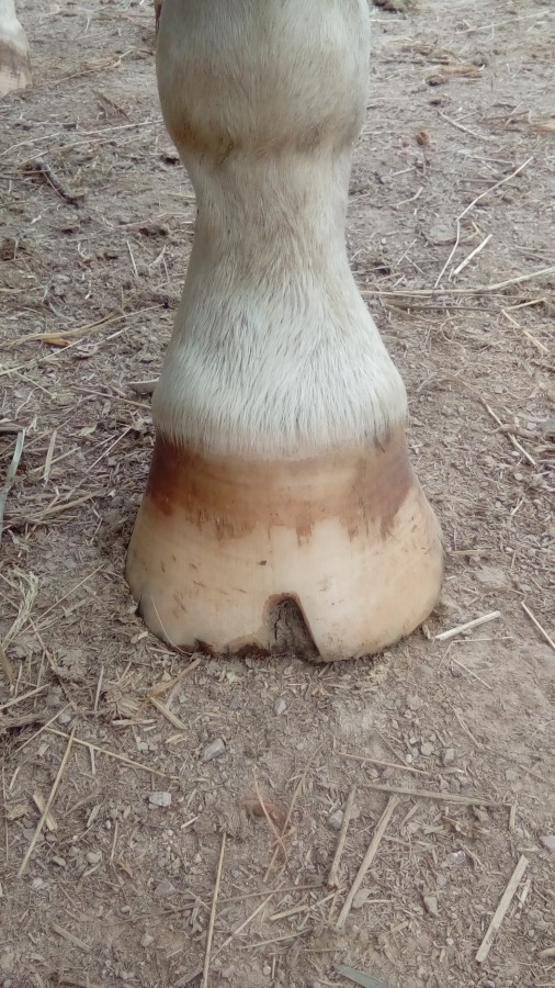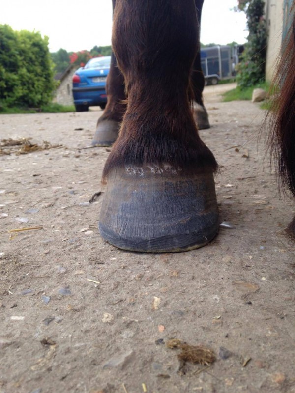 Cet hiver, avec l'humidité et ses pieds en gruyères, elle m'a fait un légère mue de sabots... du clou qui dépasse jusqu'au fer, 2-3 mm de corne se sont décollés sur les antérieurs. Aucune boîterie par contre, pas du tout génée.