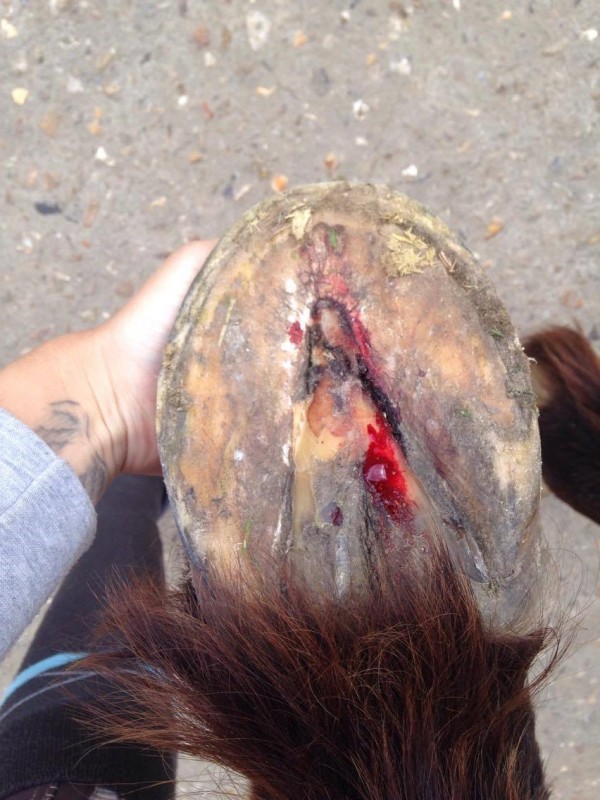 Le postérieur droit saignait suite à corne "trop sèche" et "un petit peu trop entamée" sur le parage... Mon loulou est déféré des postérieurs depuis 3 ans et le vis très bien aujourd'hui, il a toujours eu les pieds secs mais de là à saigner...