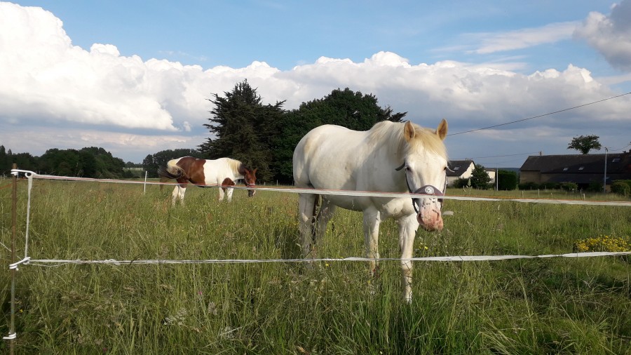 Mon voisin a donné sa ponette, il a trop d 'herbe pour ses moutons et m'a proposé de me prêter une partie de son champs.