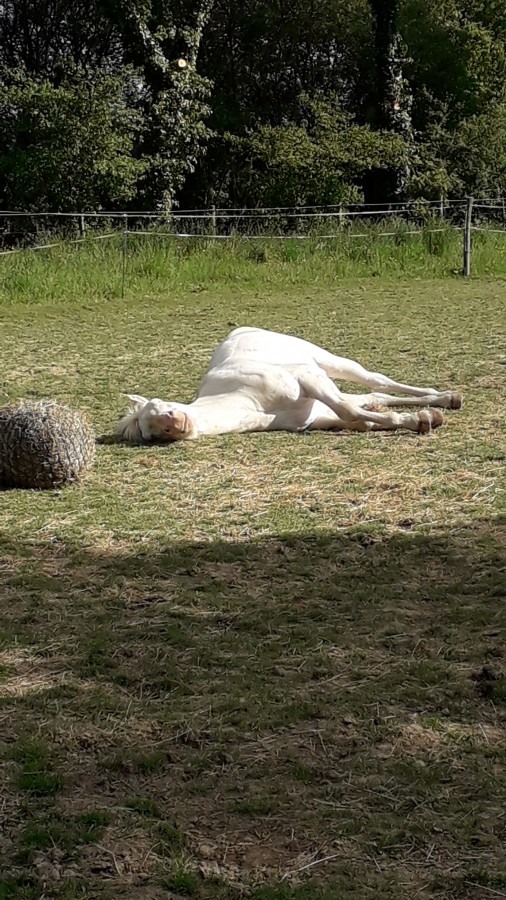 Je trouvait qu'elle avait mal aux pieds et commençait une seime sur un des postérieurs (elle a les 4 pieds blancs)