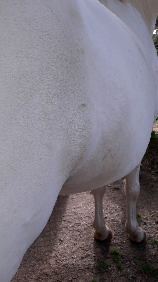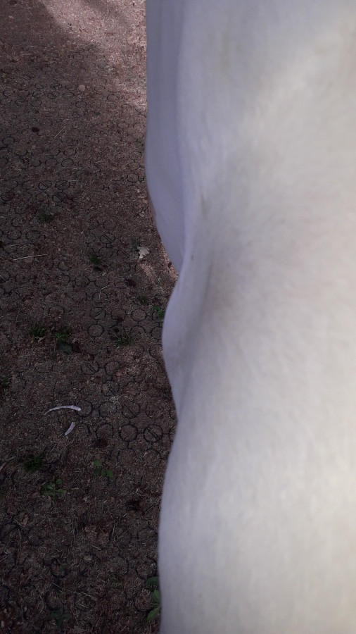 Je trouvait qu'elle avait mal aux pieds et commençait une seime sur un des postérieurs (elle a les 4 pieds blancs)