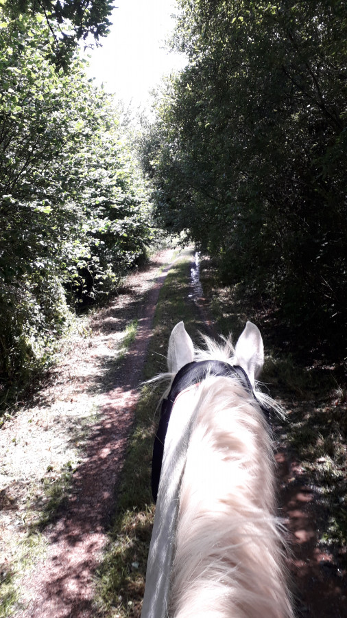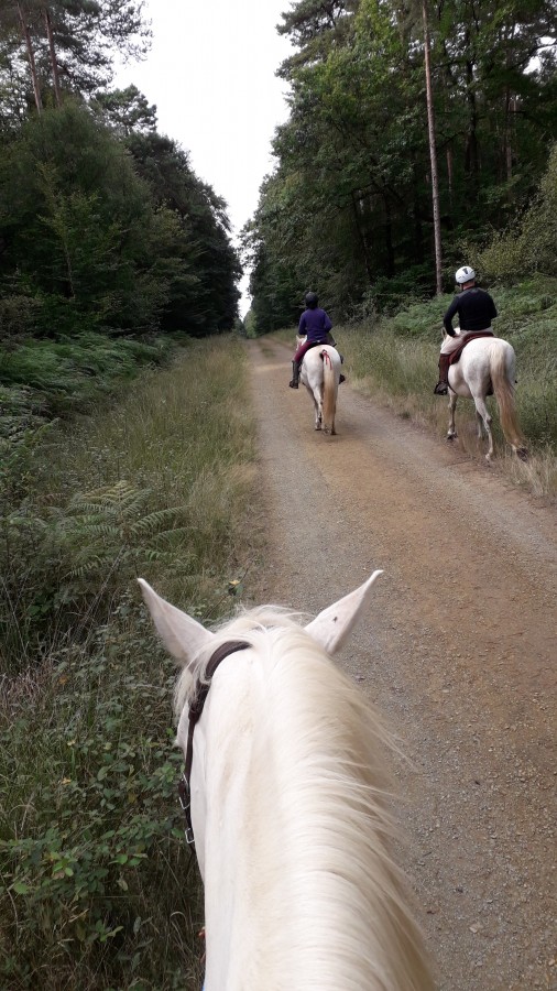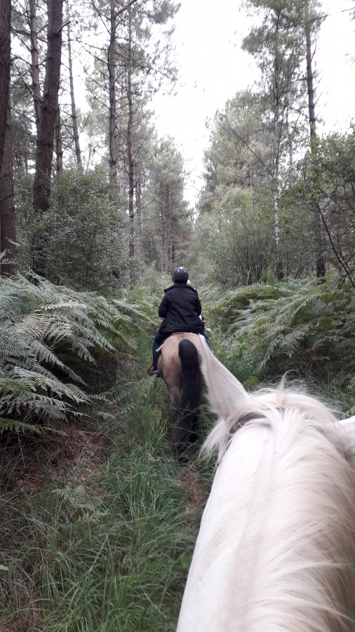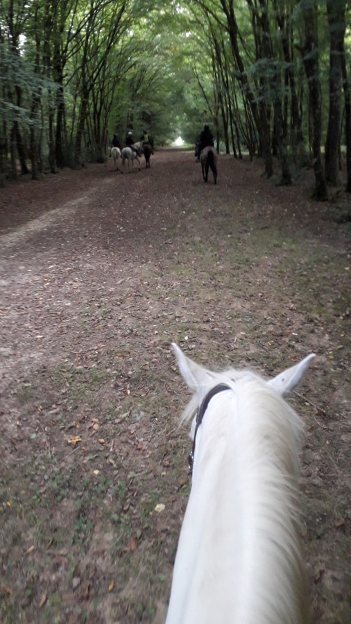 parties à 5 cavaliers, tous très à l'écoute les uns des autres, mon amie n'étant pas super à l'aise en extérieur avec sa jument (dur de passer de son vieux passe partout à un nouveau cheval un peu plus vif