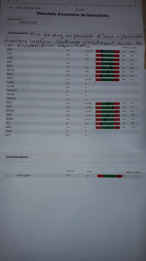 Voilà voilà, ce n'est pas le pire, mais c'est étrange quand même.... pas fibrinogene (la valeur aurait explosé)