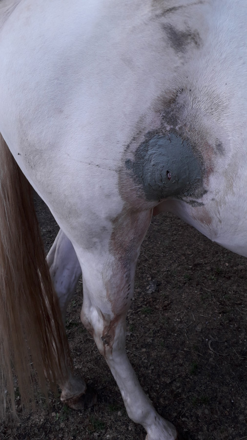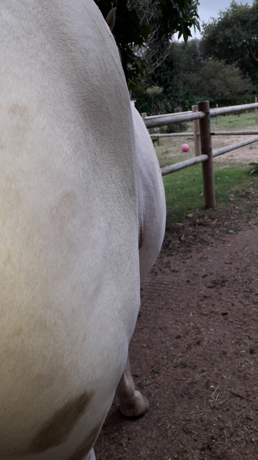 Je trouvait qu'elle avait mal aux pieds et commençait une seime sur un des postérieurs (elle a les 4 pieds blancs)