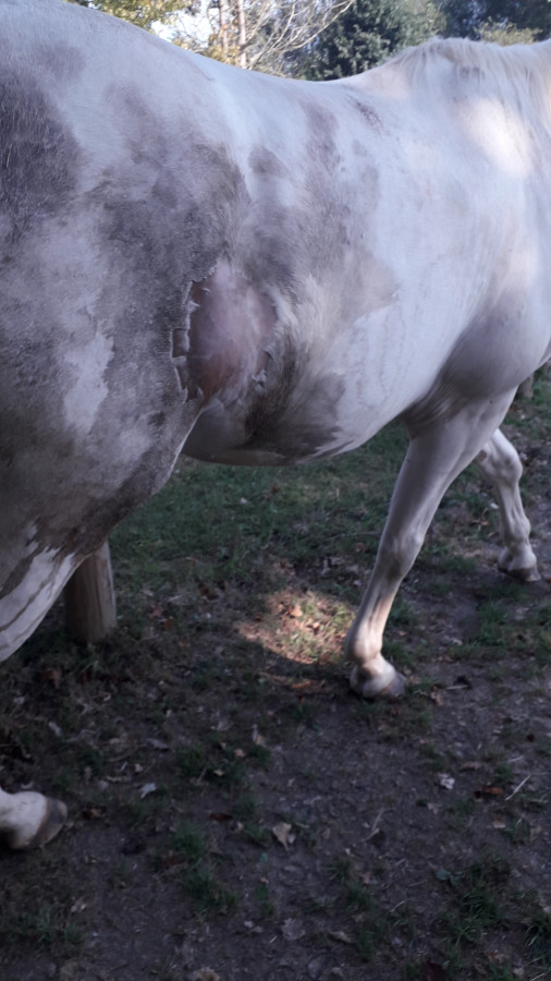 Cet hiver, avec l'humidité et ses pieds en gruyères, elle m'a fait un légère mue de sabots... du clou qui dépasse jusqu'au fer, 2-3 mm de corne se sont décollés sur les antérieurs. Aucune boîterie par contre, pas du tout génée.