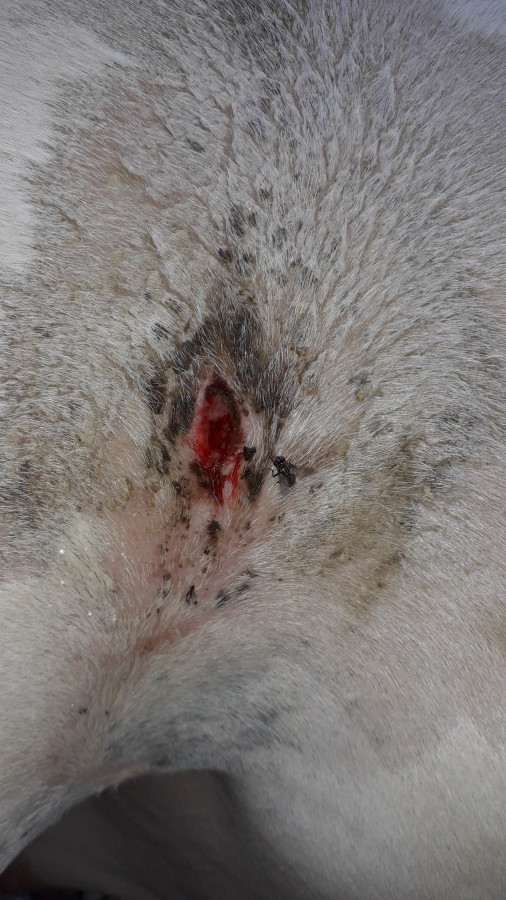 Le trou me paraît propre, enduit d'argile autour pour aider à dégonfler, sans huile Essentielle car il se gratte avec les dents dont pas envie qu'il s'intoxique !