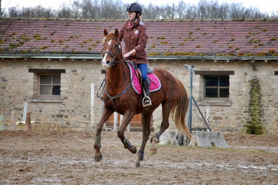 Donc je prépare la bête on faisait rênes allemandes Delphine me dit des que je rentre dans la carrière : "secoue lui les puces elle est en forme ! "