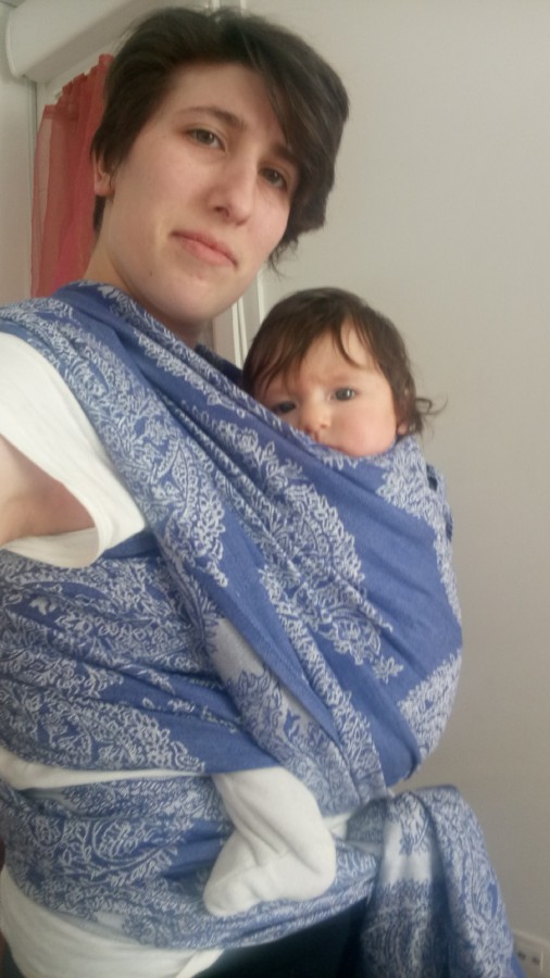 Adrien n'étant pas à l'aise avec l'écharpe, au début ce sera probablement lui qui l'utilisera beaucoup pour porter Lucie pendant que je porterai numerobis en écharpe