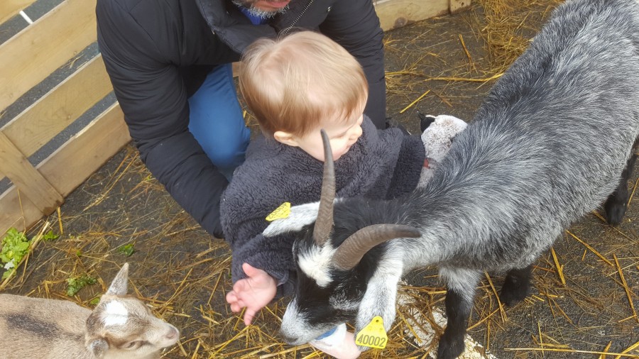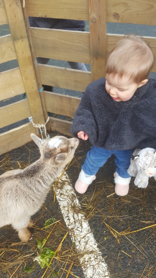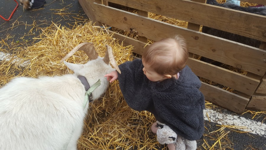Lucie et les animaux c'est l'amour fou aussi... Aujourd'hui mini ferme pédagogique où on faisait les courses, elle était aux anges...