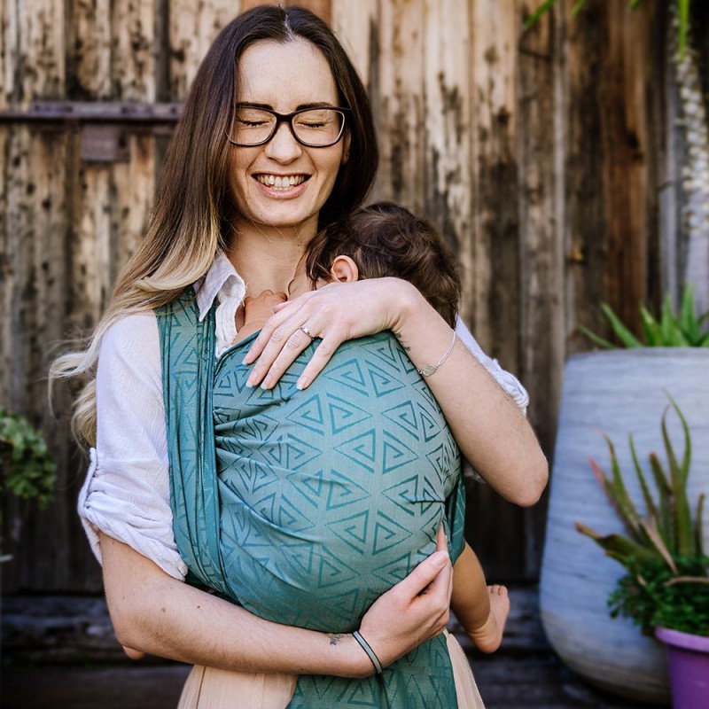 Je la mettais comme ça le temps des repas si elle voulait téter! Pendant les pics de croissance ça m'a sauvée! Et sinon en écharpe classique (je ne crois pas avoir de photo par contre), je la mettais plus basse, à hauteur du sein... Mais je pense que c'était plus tard...