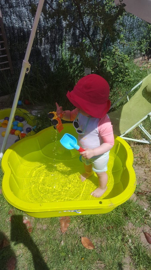 J'espère que vous avez tous profité du soleil ce week end ! Hier on a vu Olivia et lololabiscotte :-) Aujourd'hui barbecue avec des amis chez nous. Lucie a bien profité, on lui avait mis de l'eau pour faire une piscine dans la partie du coquillage qui ferme le bac à sable. Elle adore l'eau !
