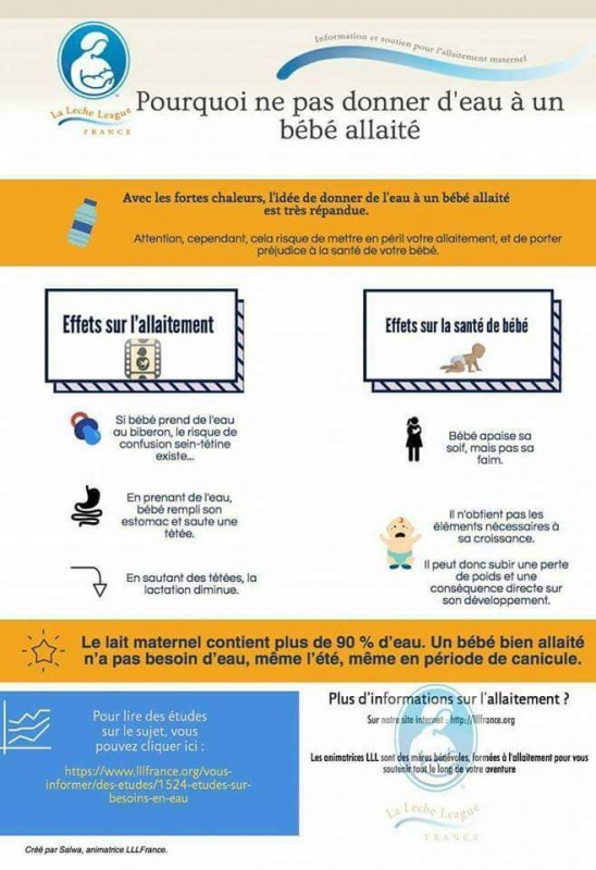 enfaite tu es une mere parfaite qui connait tout et donc nous ce qu'on dit cest de la merde. ben excuse moi mais quand il fait très chaud ou bien le bébé a de la fievre et qu'il a moins se 6 mois on peut lui donner de l eau.