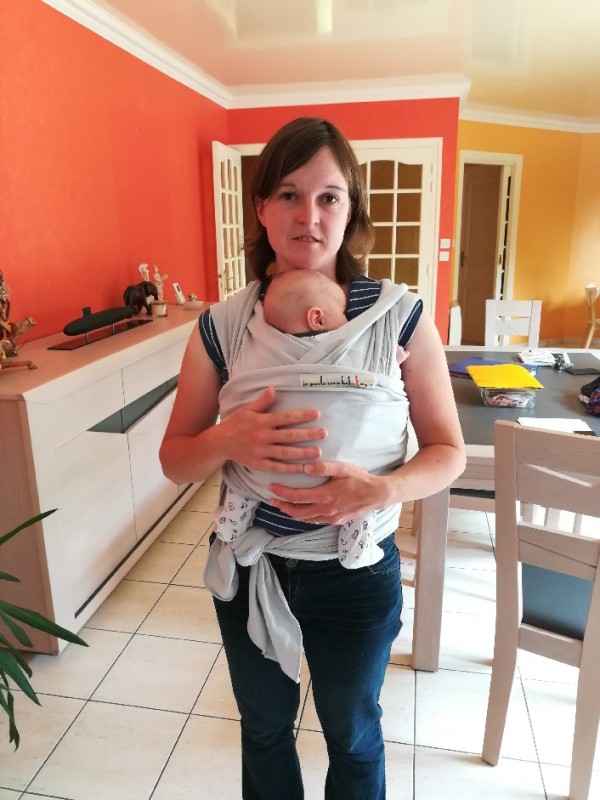 une collègue m'a passé son écharpe jpmbb basic neuve qu elle avait acheté mais jamais utilisée car refroidit par le noeud... mon bout de chou va sur ses 2 mois et, on a fait vite fait le noeud une fois avec une auxi de la mater puis en rentrant il s est vite mis à faire chaud donc me disant que je n allais pas sortir je ne me suis pas mise dedans jusqu a cet après midi ! On a fait le noeud ventral pour nourrisson indiqué dans la notice. Je vais essayer de vous mettre une photo pour que vous me donniez votre avis.