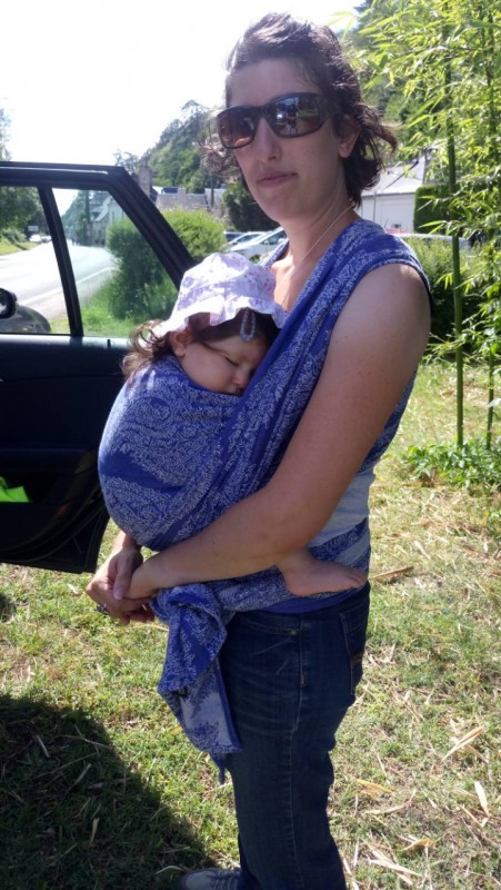 J'ai toujours la mienne mais ne m'en sert plus... Je n'arrive pas à faire de n?uds assez soutenant et l'installation au dos est compliqué pour moi.
