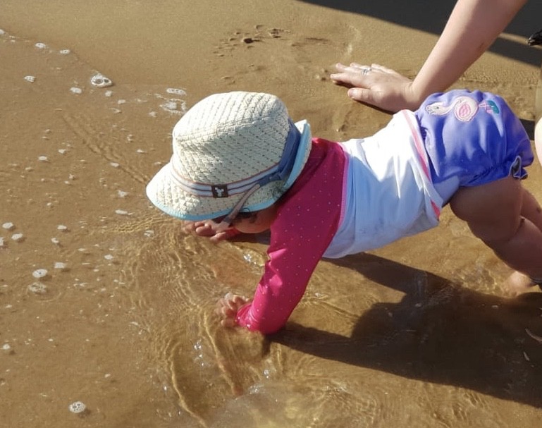Du coup j'ai récupéré Léane en pleine forme, avec 4 (!!!) nouvelles dents qui arrivent (dont 1 qui a déjà percé) en + des 2 qu'il y a déjà en bas. En plus elle sait maintenant faire 5-6 " pas " de 4 pattes donc une belle étape de franchie hihi
