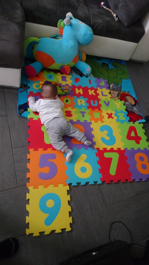 bon normalement évidemment il y a tout plein de jouets partout. C'est juste que je venais d'installer le nouveau tapis.