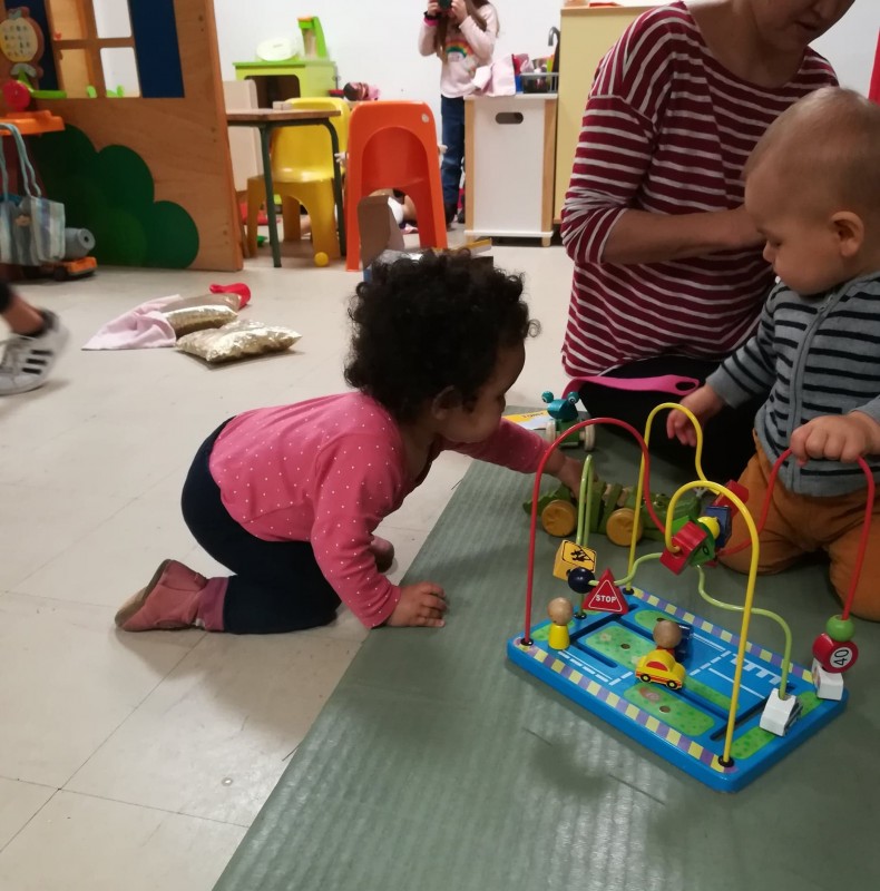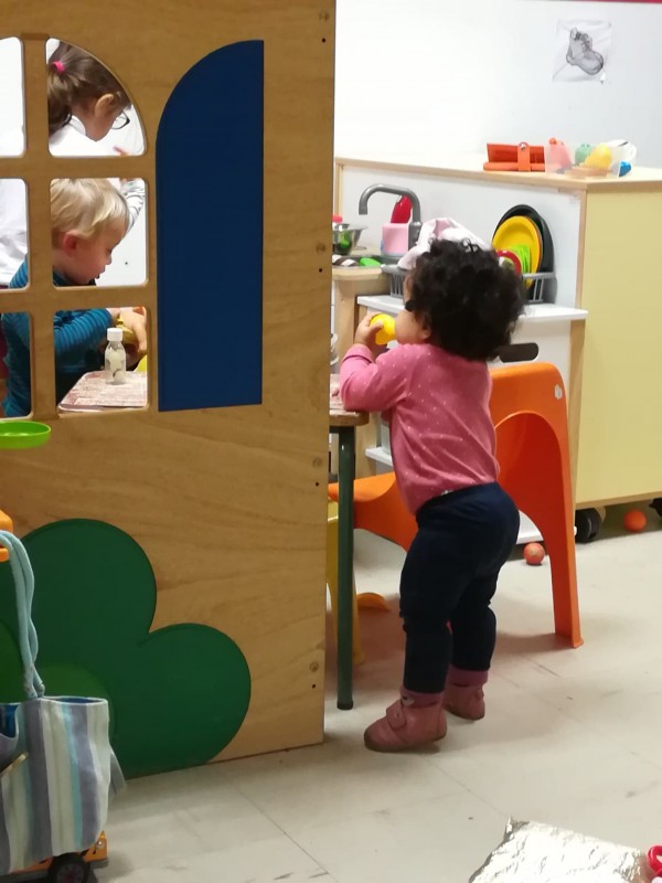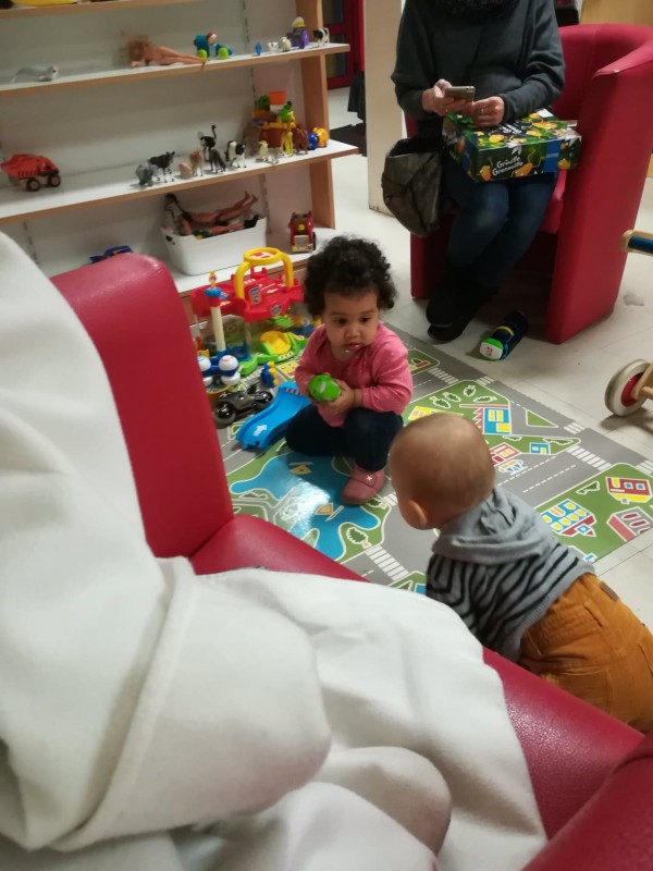 Comme je sais que Léane est un peu craintive dans la foule, je me suis posée par terre avec elle assise entre mes jambes, lui proposant 2-3 jouets que j'avais repéré.. QUE NENNI. Léane m'a regardé d'un air perplexe avant de filer à 4 pattes choisir ses propres jouets dans les étagères mdr ! J'étais vraiment agréablement surprise, elle a joué une grosse heure en pleine autonomie, avec moi qui la surveillait à 20m mais elle a fait sa vie quoi. Elle a choisi ses jouets, été voir les bébés et les plus grands, elle a piqué quelques jeux mais a aussi laissé les siens quand les autres voulaient essayé, et elle a crié de joie. Bref c'est validé, la prochaine fois on prend notre adhésion hihi :)