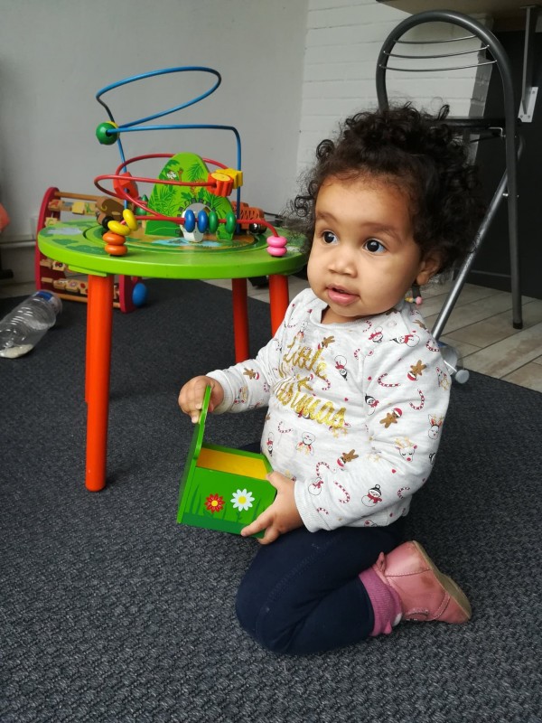 Langage … ça reste du basic "papapapa / babababa / mamamama" on a de temps en temps papa et maman mais je pense qu'il n'a pas compris encore la signification