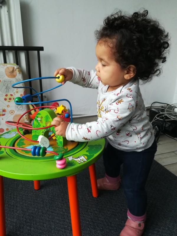 Sinon il s'agrippe partout, fait des tractions sur tout ce qu'il trouve (lit parapluie / fauteuil nid / commode / placards ), je me dis qu'un jour il va se rétamer sévèrement grrrr. Il a pris pour habitude de monter sur notre table basse, et pour en redescendre ou lui a appris la marche arrière qu'il maitre parfaitement, ça nous fait drôlement rire.