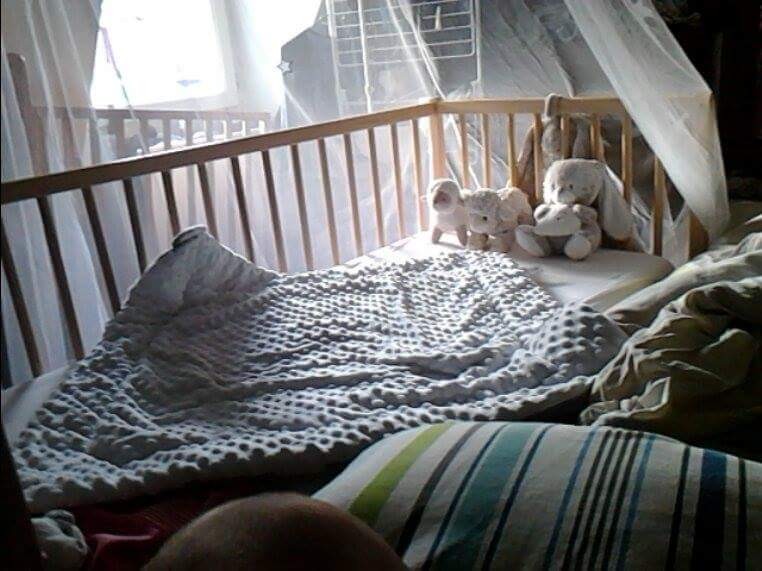 Maintenant on a un 90 collé à notre 140, chacun a la place de dormir en toute sécurité et en toute sérénité!