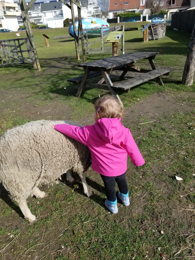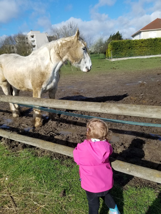 Ce matin on a profité des éclaircies (merci le vent!) pour aller faire un tour à la ferme pédagogique. On a beau y aller toutes les semaines... Lucie ne s'en lasse jamais.