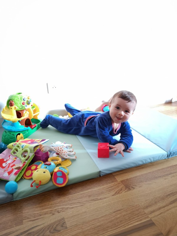 Pour tout vous dire je m'inquiétais beaucoup (et me culpabilisais...) que son manque de sommeil influence son développement, il a stagné pendant un bon moment. Mais j'ai l'impression qu'en fait Aédan réfléchit beaucoup avant de faire les choses mais du coup il les acquiert très vite ensuite, là depuis 15 jours il maîtrise parfaitement le 4 pattes et s'éclate dans la maison à courir derrière les chats (et quel bonheur de le voir se précipiter vers moi quand je rentre