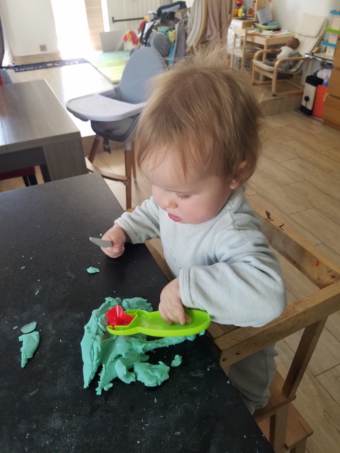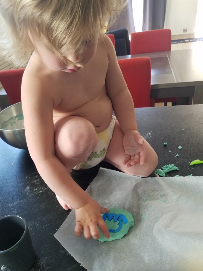 Ce matin atelier pâte à sel pour la fête des pères. Les filles se sont bien amusées et Alix a super bien participé, c'était chouette !