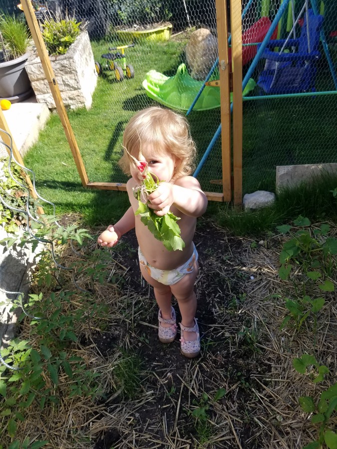 Ma petite fermière qui va chercher ses œufs et ses radis XD