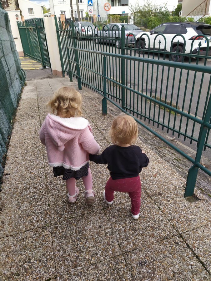 Elle ne marche toujours pas, en général elle fait 2-3 pas en se tenant à nos mains puis se remet à 4 pattes et file à toute vitesse. Ca va plus vite haha !