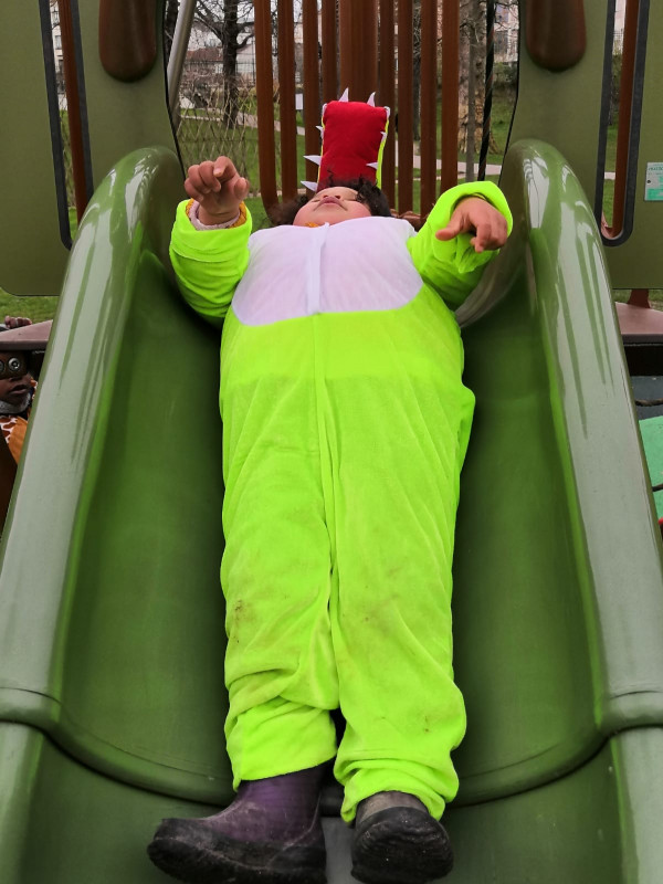 D'ailleurs ils ont été au parc déguisés mardi, ils étaient trop fiers et moi j'ai bien rigolé quand j'ai vu les photos aha quand je dis qu'elle aime trop les crocodiles ... (ils ont une combi en dessous d'où le côté un peu costaud ahaha)