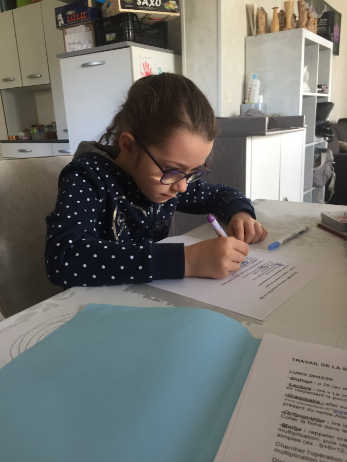 . Et Manon ne se lasse toujours pas de ses devoirs, juste hier elle comprenait pas pourquoi elle devait s’habiller avant de travailler ^^