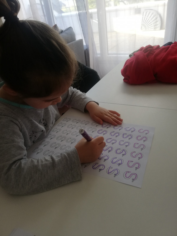 On s'entraîne sur les S qu'elle a tendance à faire à l'envers
