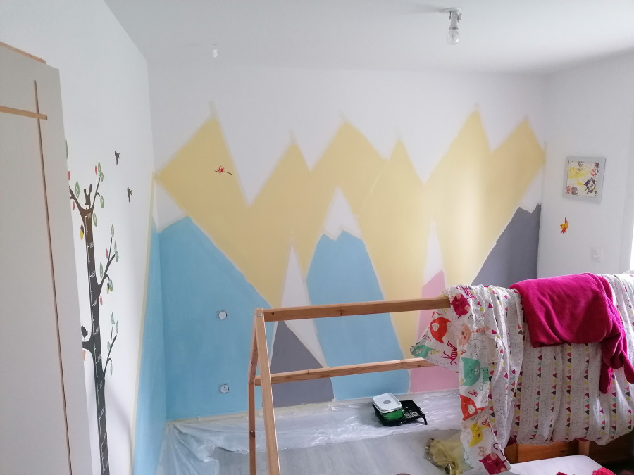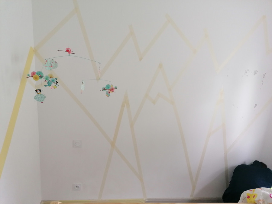 agathe90 et netif j'ai fait avec une seule couleur ce genre de motif sur une commode, le truc c'est de faire droit et des rectangles égaux pour que ça fasse équilibré, il faut prendre le temps de mesurer, parce qu'un sommet de montagne c'est pas penché ahah Ca m'a pris un peu de temps mais une fois que la bande cache est mise ça roule !