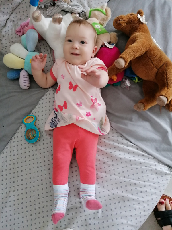Elle a appris à faire le nœud d'attache, à panser le poney, le mener à pied et puis séance à cheval avec les aides (y compris la voix pour avancer, s'arrêter et même reculer).
