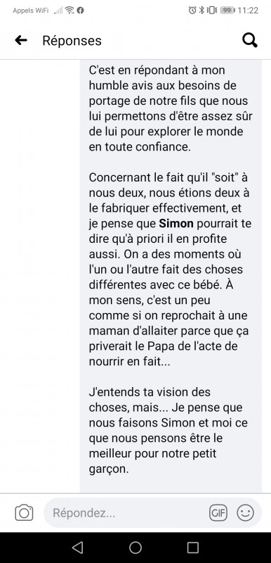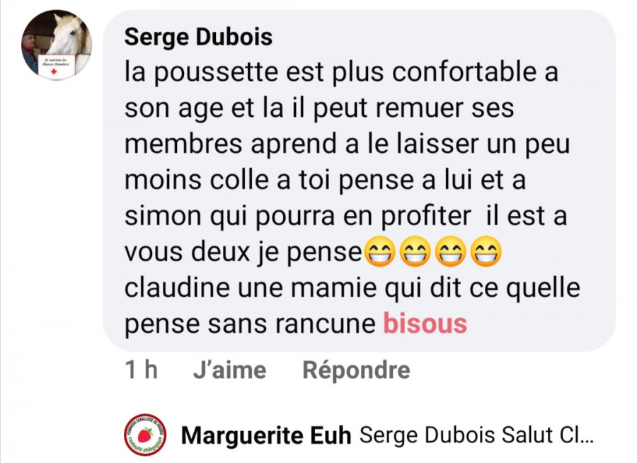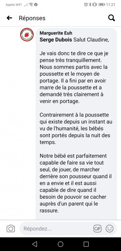 Eh bien j'admire ton calme dans ta réponse, parce que franchement le message est assez imbuvable ! En dehors du commentaire sur la poussette, se permettre de commenter la place des 2 parents, c'est vraiment incorrect.