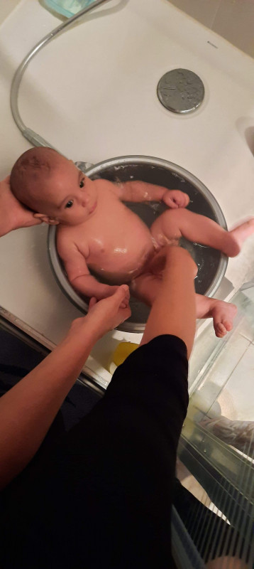 Moi j'ai remarqué qu Aubin est beaucoup beaucoup plus à l'aise avec le gilet de nage (genre de gilet qui flotte). Sans il est un peu tétanisé et s'accroche à nous des 4 membres, avec il se fait plaisir et bouge beaucoup plus facilement.
