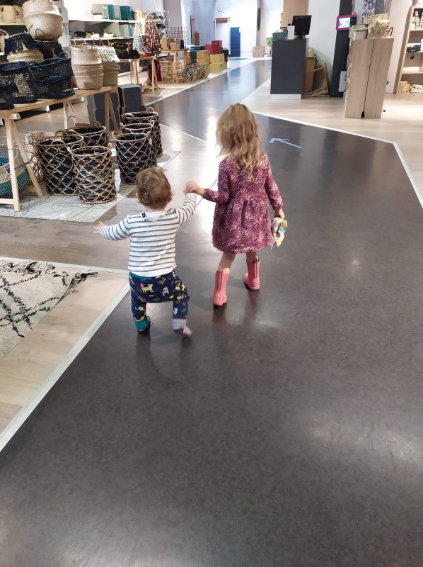 Et moment Gaga de la mort, Zola voulait marcher dans les magasins mais... En donnant la main à sa soeur. Puis les ailes lui poussaient et elle avait envie de visiter partout. C'est cool cette période où ils démontent pas encore les magasins
