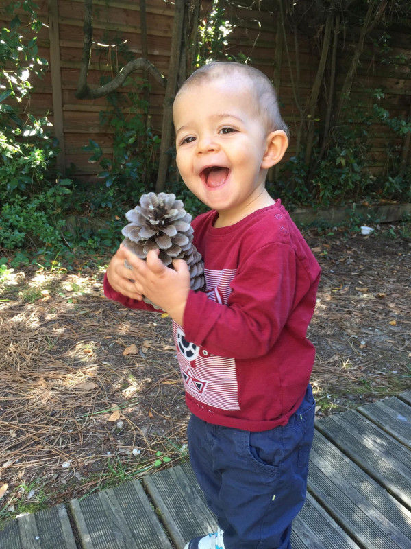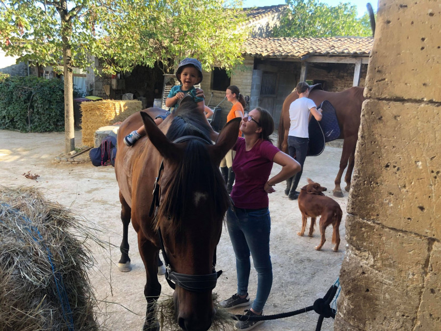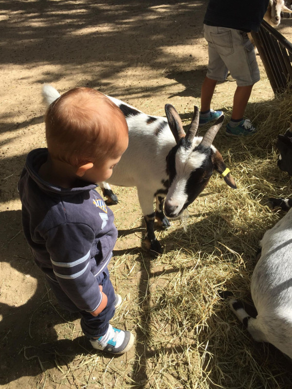 Vendredi cetait coucou a mon ancien cheval, on a fait grimper Arthur dessus vite fait, mais il preferait brosser la criniere.