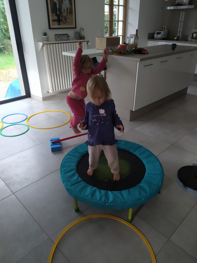 Sinon nos travaux avancent bien (on fait quelques travaux d'aménagement dans notre nouvelle maison) mais alors on ne fait que se disputer avec mon chéri... On est à cran tous les deux, c'est très pénible... et le fait d'être confinés n'aide pas vu qu'on vit vraiment H24 ensemble (on travaille même côte-à-côte sur la mezzanine). Heureusement Amandine est vraiment gentille et autonome, et elle joue de plus en plus toute seule. Ca nous enlève un peu de stress quotidien, car elle a longtemps été "chouinou" dès qu'on n'avait pas 100% de notre attention sur elle. Je pense que le fait qu'elle soit la seule grande chez la nounou, ce qui pour moi était une crainte au début, l'habitue finalement à s'occuper seule. Et ça nous arrange bien dans cette phase bricolage/aménagement que l'on traverse actuellement