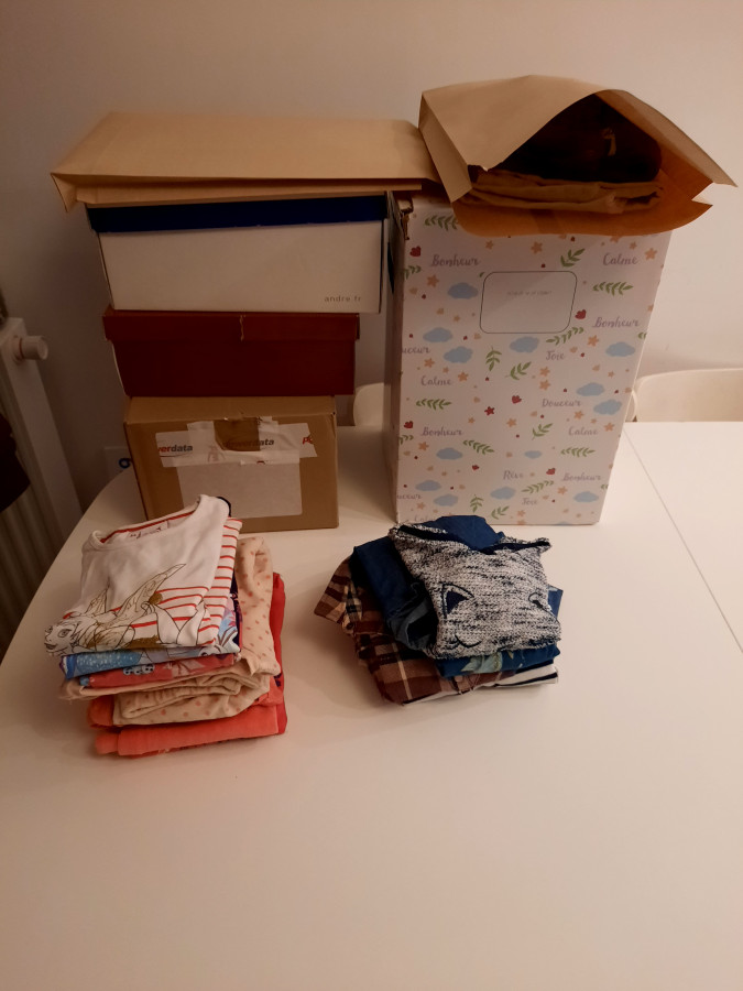 Bon après une journée à faire du tri et des photos des vêtements hiver de 3 mois à 3 ans de Louise, j'ai 8 commandes à envoyer, mais j'ai pas ce qu'il faut pour tout envoyer