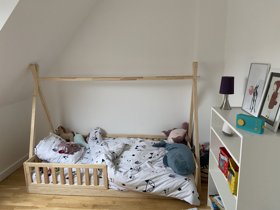 agathe90 le cadre tipi du lit de Léane passe tip top sous la mansarde!