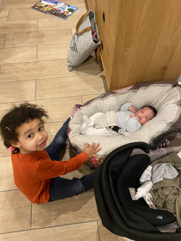 Et surtout, contrairement à sa s?ur, il arrive déjà à espacer ses tétées d'environ 2h en journée (on fait à la demande hein donc c'est variable mais quand même) et tète environ 20-30min. Donc j'arrive vraiment à faire plein de choses et à m'occuper de sa grande s?ur qui montre 0 signes de jalousie pour le moment. Leur papa prend également le relais au top pour l'un comme pour l'autre donc personne ne semble lésé. :-)