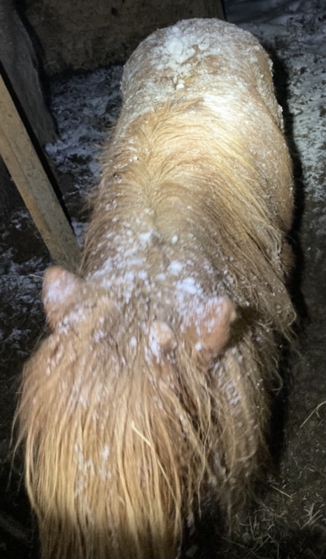 Je viens de mettre le foin de la nuit à mes mémères. On a minimum 6 cm de neige et ça continue de tomber! Home office général demain! Ça va être compliqué pour mon compagnon qui est maçon!