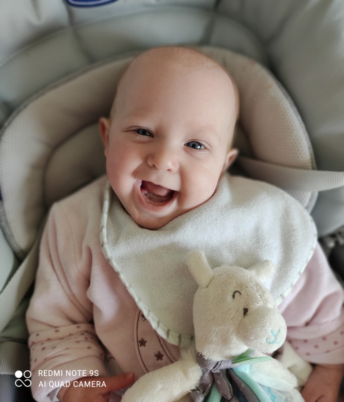 Adèle trouve ses doigts mais c'est encore un balbutiement du coup les endormissements sont un poil plus long. Elle veut téter mais ne tient pas toujours bien ses doigts dans sa bouche donc elle s'énerve.