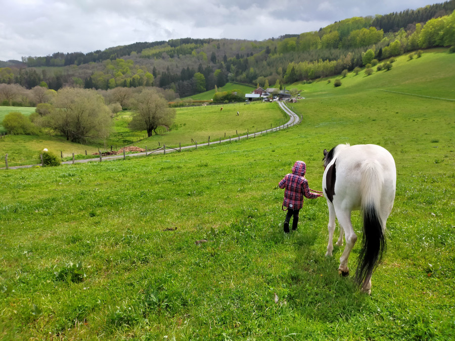 Pour l'anecdote, il a fallu aller chercher la ponette au pré. Elle nous a fait faire une petite trotte! Et encore, elle était loin d'être au bout du pré (c'est en pente et immense!) et c'était celle du troupeau qui était la plus proche (ouf! :-p).