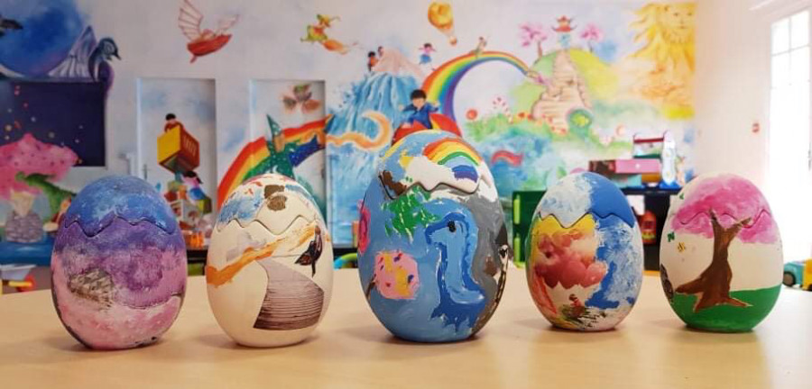loraline16 j'ai fait l'effort de pas mettre frairie ^^), première fois pour Arthur. Samedi matin on a était à la ludothèque pour un atelier peinture sur ?uf, samedi midi on a manger au resto tous ensemble et je suis partie bosser.