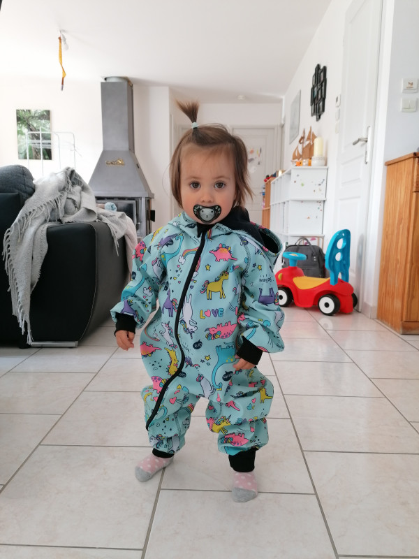 Le " souci " c'est que du coup Léane est très bien niveau taille dans sa combi jaune comme dans la dino/licorne aha problème existentiel de maman quoi ahaha