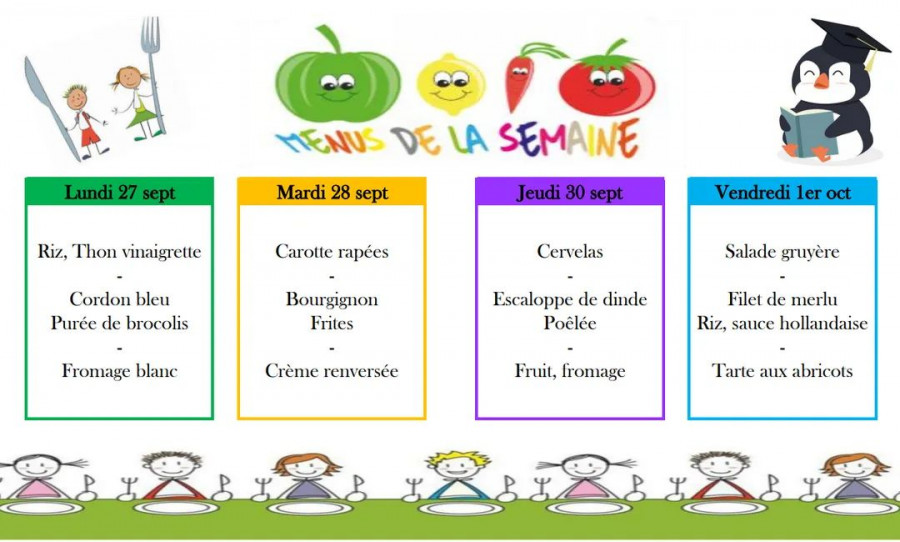 Tiens, en parlant cantine de l'école. Chez nous c'est une vaste blague. Ça fait 3 fois que j'en parle depuis la rentrée et qu'ils sont censés me mettre en contact avec la personne qui gère les menus : toujours rien.