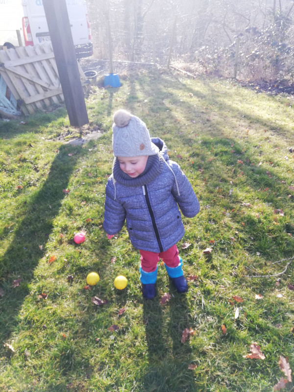 Nous sommes allés faire un petit tour +jeux dans le jardin pendant que je désherbant et ramassait les crottes du chien